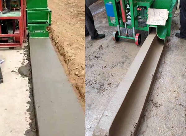 - 如果是又細(xì)又窄的路沿石:如35CM 高12公分寬,則必須使用小型擠壓型滑模機(jī)。混凝土較干,易于成型。