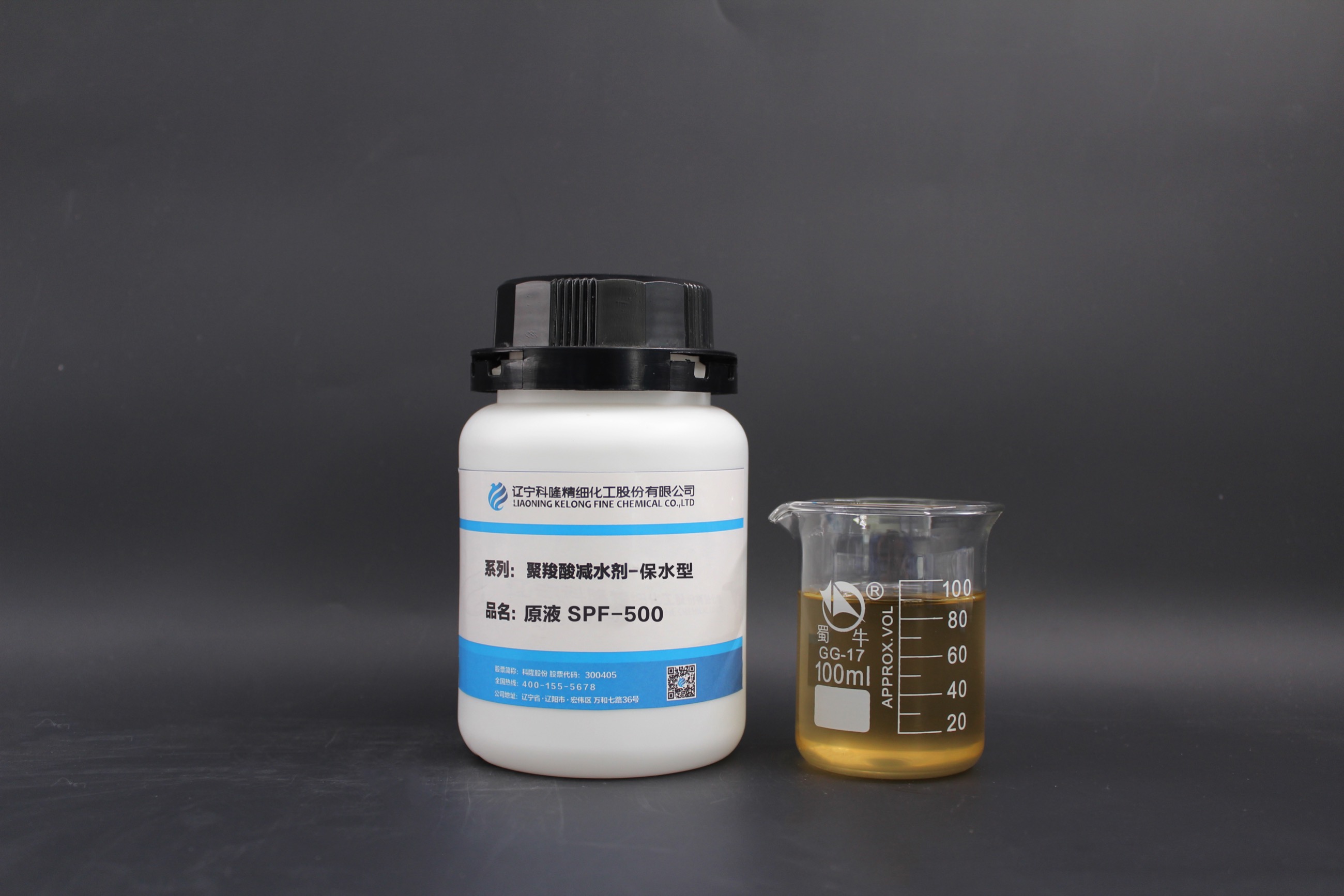 SPF-500 是針對質量較差的砂石骨料,在原有聚羧酸鹽類高性能減水劑工藝基礎上研發改進的保水型減水原液,該型減水劑具有優異的保水性、較高的減水分散性能,可以顯著改善新拌混凝土的和易性、漿體對骨料的包裹性,從而提高了混凝土的泵送及可施工性能。SPF-500 可廣泛應用于普通混凝土、泵送混凝土、超流態自密實以及高強高耐久性混凝土當中。