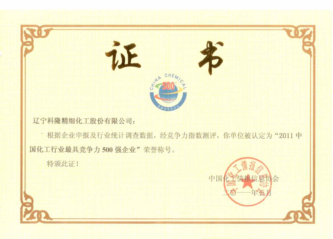 中國化工行業(yè)最具競爭力500強企業(yè)